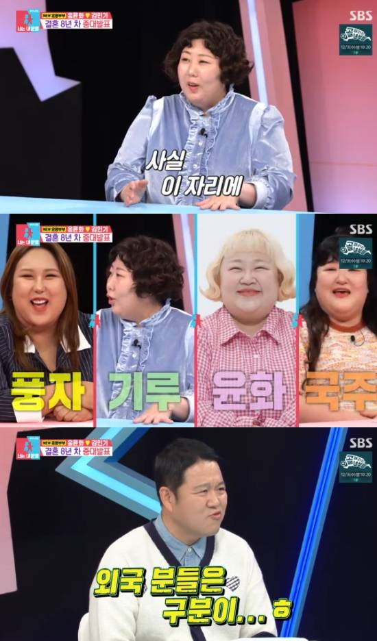 이어 신기루는 "사실 저나 풍자, 홍윤화, 이국주 이렇게는 누가 나와도 비슷하다"고 했고, 김구라는 "우리나라 사람들은 네 사람을 구분하지만, 외국인들은 구분 못 할 것 같다"고 공감해 웃음을 자아냈다.