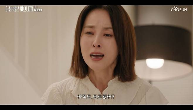 1일 방송된 TV조선 월화미니시리즈 '다음생은 없으니까' 7회에서는 조나정(김희선 분)이 오빠 부부에게 당하고 사는 엄마 때문에 속상해하는 모습이 그려졌다.