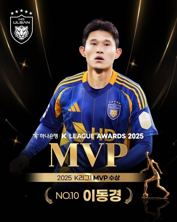 이동경은 지난 1일 서울 서대문구 소재 스위스그랜드호텔에서 열린 하나은행 K리그 2025 대상 시상식에서 K리그1 최우수선수상(MVP) 수상자로 호명됐다.