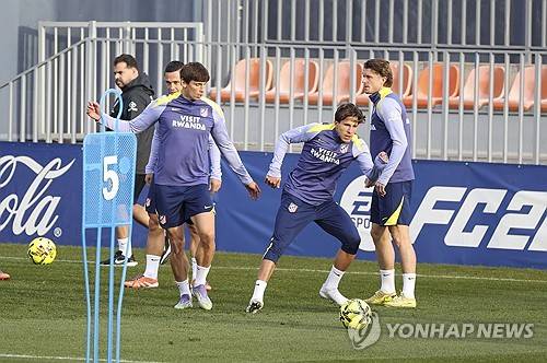 epa12562674 Atletico Madrid's players take part in a training session in Madrid, Spain, 01 December 2025. Atletico Madrid will face FC Barcelona in their Spanish LaLiga soccer match on 02 December. EPA/Victor Lerena EPA/Victor Lerena