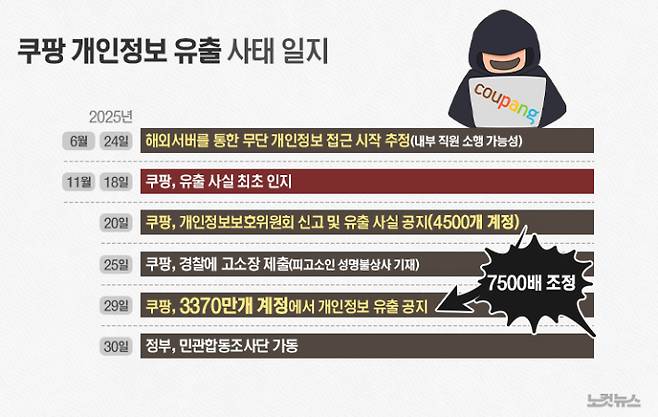 쿠팡은 당초 약 4500명의 정보만 유출됐다고 주장했지만, 실제 드러난 피해 규모는 7500배가 불어난 3370만 명에 달했다. 내부 인증키를 장기간 방치한 구조적 문제가 원인이라는 지적까지 제기되면서 '쿠팡 포비아'가 확산하고 있다.