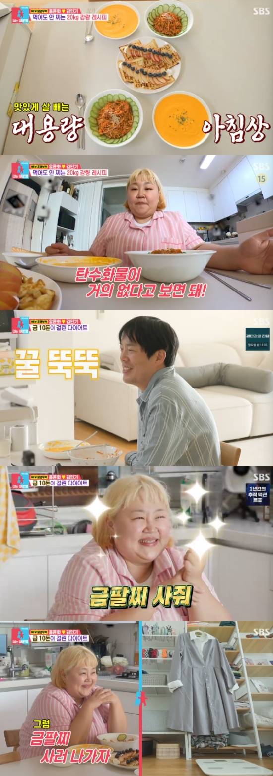 그러면서 "예전에는 식단과 운동을 과하게 했다. 그러니까 보상 심리가 생기더라. 그래서 이번에는 음식을 바꿔먹는 다이어트 방법을 선택했다"면서 "저당, 저염을 하지 않는다. 그렇게하면 기분이 나빠진다. 먹고 싶은거 먹으면서 빼야 스트레스를 안 받는다"고 홍윤화만의 다이어트 식단을 공개했다.