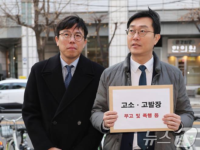(서울=뉴스1) 황기선 기자 = 장경태 더불어민주당 의원이 2일 오전 서울 종로구 서울경찰청 민원실에서 자신을 성추행 의혹으로 고발한 고소인을 무고 및 폭행 등으로 고소·고발을 위해 발걸음을 옮기고 있다. 2025.12.2/뉴스1