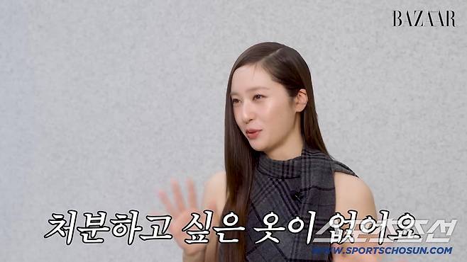 또 크리스탈은 "옷장 속에는 블레이저가 가장 많다. 사실 다 많긴 한데 블레이저랑 코트가 진짜 많다"며 "저는 처분을 잘 안 한다. 십몇 년 전에 입었던 것도 다 있고, 새로 사도 있는 거랑 비슷하다"고 웃었다.