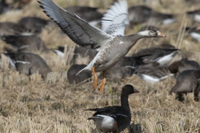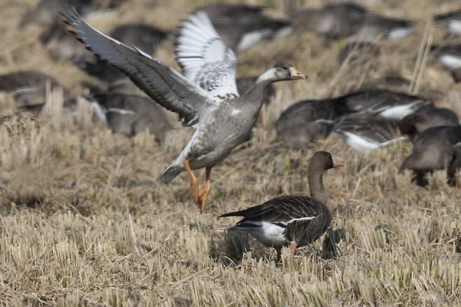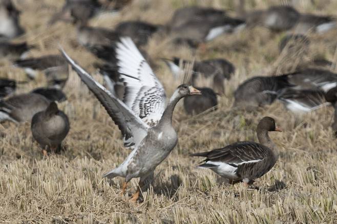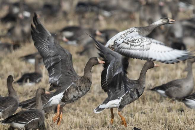 3년째 강화도 찾는 ‘황기러기’ 이어 ‘얼룩기러기’ 출현