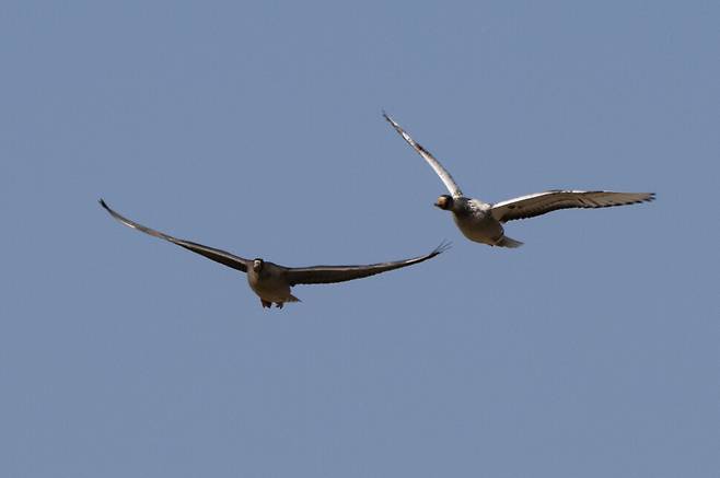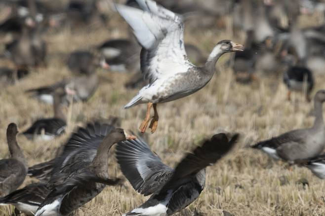 길 잃은 붉은가슴기러기까지…멋진 자태 뽐내는 쇠기러기들