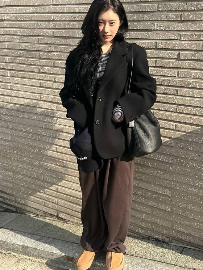 있지 채령, 올블랙 코디에 '어그부츠' 한 방…따라 입고 싶은 겨울 데일리룩