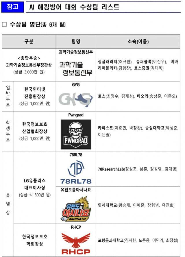 정부 주최 1회 AI해킹대회 종합 우승은?...'과학기술정보통신부' 팀 영예