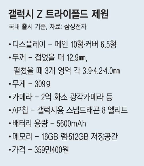 임성택 삼성전자 한국총괄장(부사장)은 “트라이폴드는 ‘스페셜 에디션’ 같은 것이어서 대량으로 판매한다기보다는 원하는 분들에게 계속 공급할 수 있도록 준비하는 제품”이라며 “폴더블 시장이 폭발적으로 성장하는 데 기폭제가 될 수 있을 것”이라고 말했다.