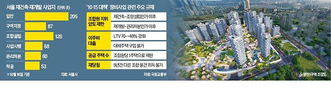 서울 전역과 경기 12곳을 동시에 규제하는 '10·15 주택시장 안정화 방안' 시행 이후 서울 재건축·재개발 사업지가 혼란에 빠졌다.
