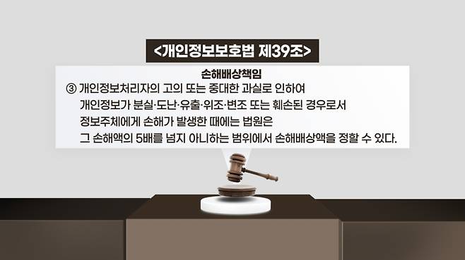 현행 개인정보보호법은 개인정보 유출이 발생하면 최대 300만원까지 피해자가 손해배상을 청구할 수 있도록 돼 있습니다.