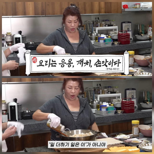 박여사는 이번 김치김밥 레시피에 대한 자신만의 철학도 전했다. 그는 “요리는 일 더하기 일은 이가 아니다. 응용이고 채치, 손맛”이라며 음식에 대한 원칙을 밝혔고, “김치만 맛있으면 큰 간 필요 없다”며 묵은지 총각김치를 단무지처럼 사용하는 자신만의 방식을 소개했다.