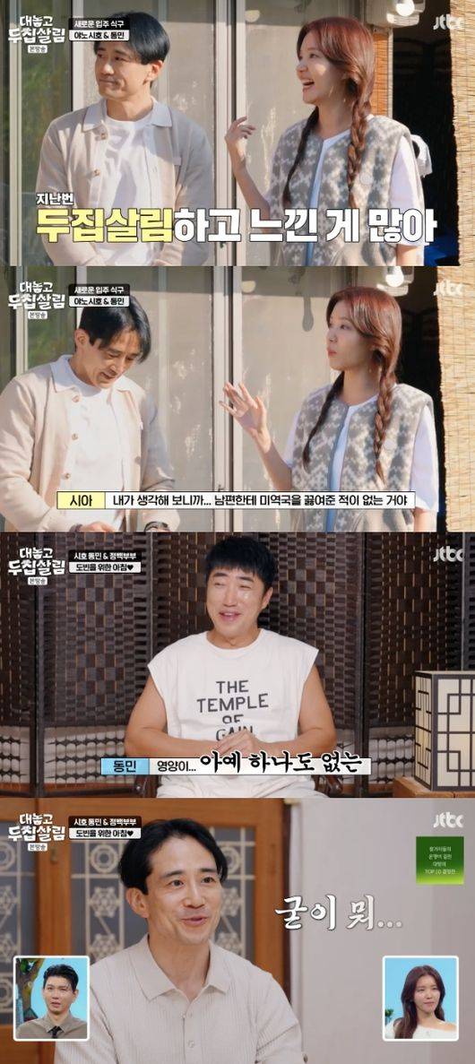 2일 방송된 JTBC ‘대놓고 두 집 살림’(이하 두 집 살림)에는 장동민과 야노 시호, 정시아와 백도빈 부부가 두 집 살림을 차리는 모습이 그려졌다.