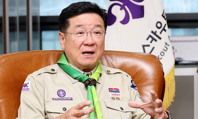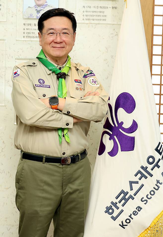 “과거 학교마다 스카우트를 유지할 때는 40만명에 달했다. 지금은 3만명이다. 지도자가 1만명, 대원 수가 2만명 정도다. 성적 우선주의 영향이 크다. 과거에는 초·중학교까지는 스카우트 활동을 하다가 입시준비에 나섰다. 지금은 유치원, 초등학교 때부터 입시전쟁이다. 여기에 절대적인 인구 부족도 원인이다. 과거 1세대가 120만명이던 게 요즘은 30만명에 불과하다. 우리뿐만이 아니다. 그러다 보니 유럽, 미국 등도 학교가 아닌 지역사회 중심으로 바뀌고 있다. 한국도 변화 과정에 있다. 특히 코로나19 팬데믹(대유행) 3년간 집합금지로 모든 행사가 중단된 충격이 컸다.”