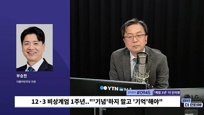 ◆ 김영수 : 알겠습니다. 오늘 이슈 <더인터뷰> 비상 계엄 1주년 되는 날이기 때문에 여러 가지 관련 사항을 물어봤습니다. 부승찬 의원이 잘 알고 계셔서요. 자세한 설명 잘 들었습니다. 고맙습니다.