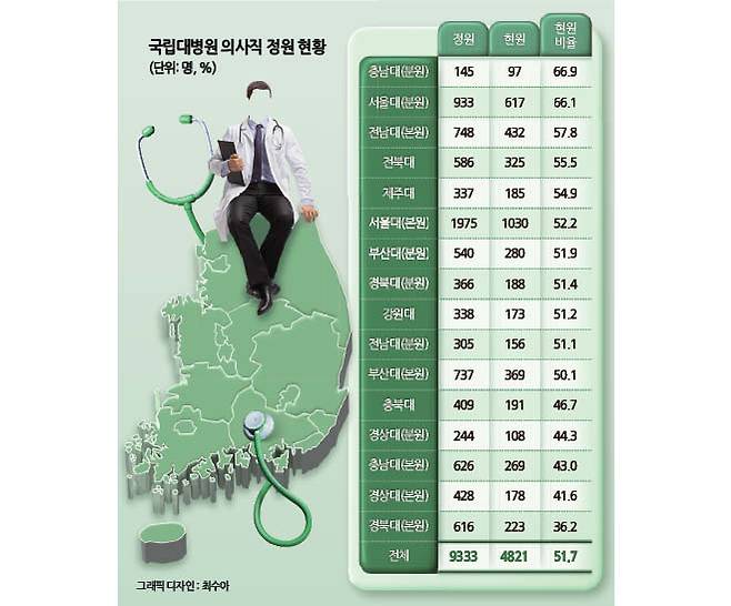 대학병원은 지역에서 중증 환자의 최종치료기관이자 새로운 의사를 키워내는 수련기관이다. 그러나 다수의 지역 소재 대학병원이 의사 부족으로 충원율이 50%에 미치지 못하고 있다.