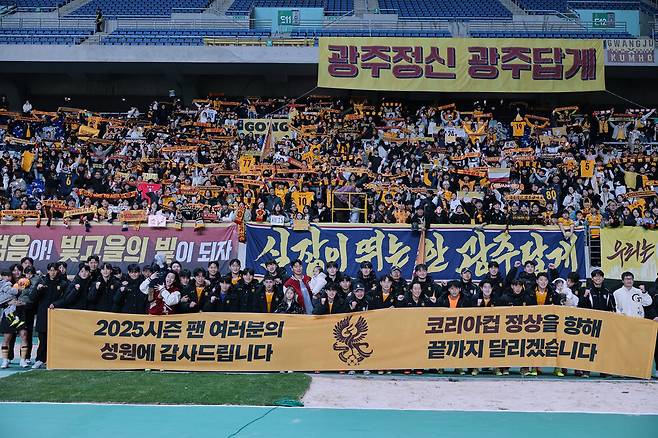 광주의 창단 이래 첫 코리아컵 우승 도전에 팬들의 열띤 호응이 더해지며 분위기가 고조되고 있다.