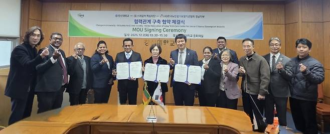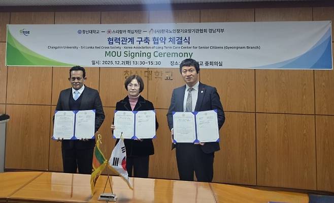 창신대는 2일 스리랑카 적십자단, 한국노인장기요양기관협회 경남지부와 스리랑카 유학생 대상 요양보호사 교육·채용 시스템 구축을 위한 다자간 업무협약(MOU)을 체결했다.