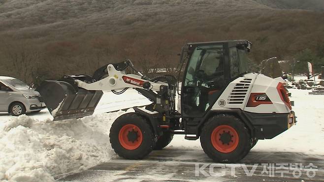 제설차가 동원돼 주차장에 쌓인 눈을 치웁니다.