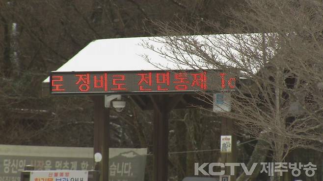대설특보가 내려진 산간에는 많은 눈과 강풍의 영향으로 한라산 모든 탐방로 출입이 전면 통제됐습니다.