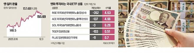최근 수익률이 반등하자 곧바로 차익 실현에 나서는 투자자도 늘고 있다. 지난 3개월간 개인투자자는 ‘RISE 미국30년국채엔화노출(합성H)’과 ‘ACE 미국30년국채엔화노출액티브(H)’에서 각각 352억원, 137억원어치 순매도했다.