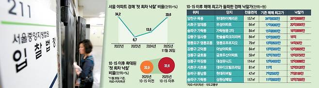 서울 전역이 토지거래허가제(토허제) 대상으로 지정된 이후 아파트 경매에서 낙찰가가 기존 최고 매매가격을 넘어서는 사례가 잇따르고 있다. 통상 경매 낙찰가격은 매매가보다 낮게 형성되지만 토허제를 적용받지 않는다는 점이 부각되며 규제 회피 수요가 경매시장으로 몰리는 것으로 분석된다.