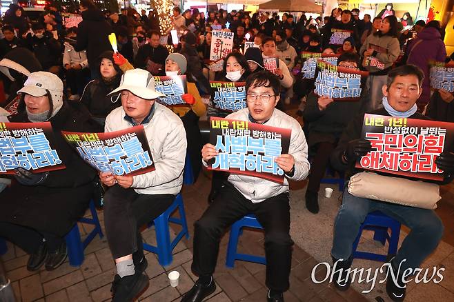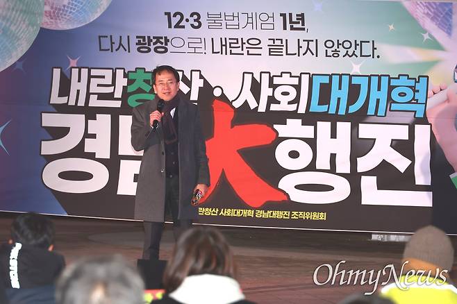 집회 참가자들은 창원 상남시장 주변 도로를 행진하면서 "내란세력 청산"을 외쳤다.