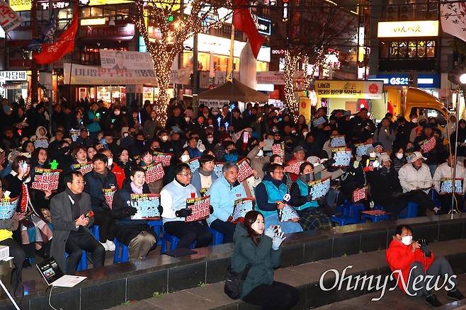 | ▲ 3일 저녁 창원 상남분수광장에서 내란새력청산 사회대개혁 경남대행진이 '내란은 끝나지 않았다. 12.3계엄 1년 다시 광장으로'라는 집회를 열었다. |