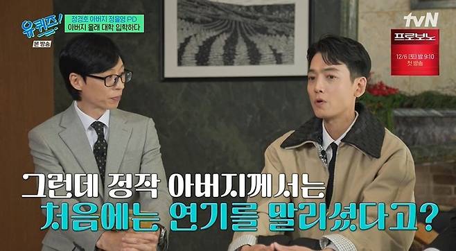 정경호 "父 정을영 PD, 처음 연기 만류…'미사' 때 연기력 부족 인정" ('유퀴즈') [종합]