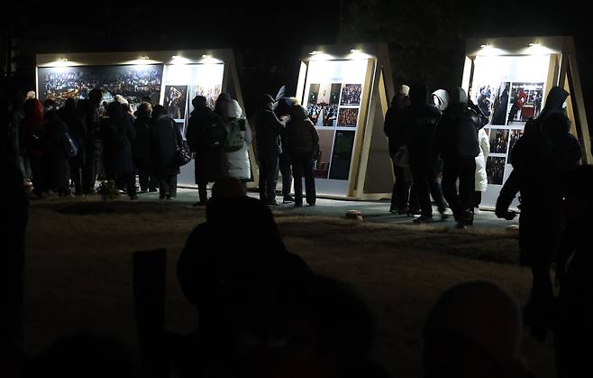 | ▲ 3일 오후 서울 여의도 국회에서 열린 '비상계엄 해제 1주년 기억행사'에서 시민들이 12·3 비상계엄 해제요구 결의안 의결 당시 사진을 감상하고 있다. |