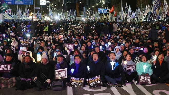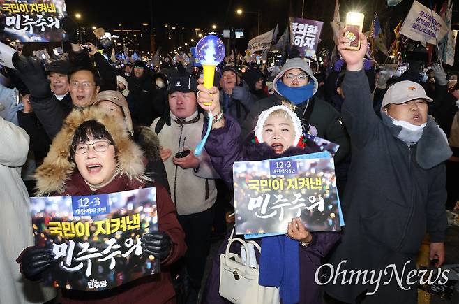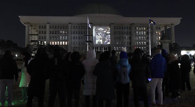 계엄 1년 다시 국회 밝힌 응원봉들 "국민의힘 나으리들 잊지 않았다"