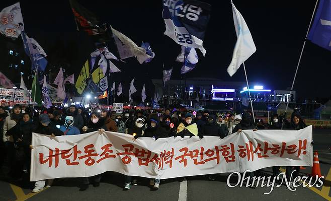 '추경호 영장 기각'에 뿔난 시민 야유...'다만세' 맞춰 국힘 당사 향해 행진