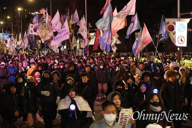 | ▲ 3일 오후 서울 여의도 국회 앞에서 열린 '12.3 내란외환 청산과 종식, 사회대개혁 시민대행진'에 참석한 시민들이 내란 청산을 요구하며 국민의힘 당사를 향해 행진하고 있다. |
