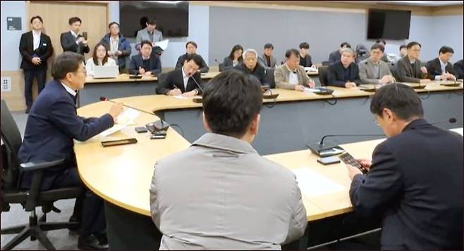 | ▲ 김동연 경기도지사가 윤석열 대통령의 비상계엄 선포와 관련 4일 새벽 도 주요 실국장 간부회의를 긴급 소집해 대책을 논의하고 있다. |