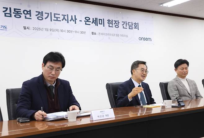 | ▲ 김동연 경기도지사가 9일 경기도 부천에 있는 외국인 투자기업 온세미(onsemi)코리아를 방문해 강병곤 대표이사와 만나 안정적 투자환경 조성을 위한 협력 방안을 논의했다. |