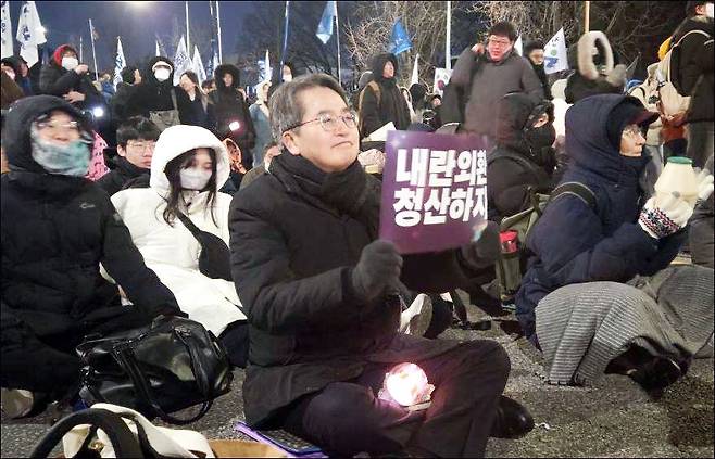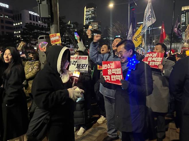 | ▲ 김동연 경기도지사가 10일 밤 국회 앞에서 열린 '윤석열 탄핵' 촉구 촛불집회에 참석했다. |