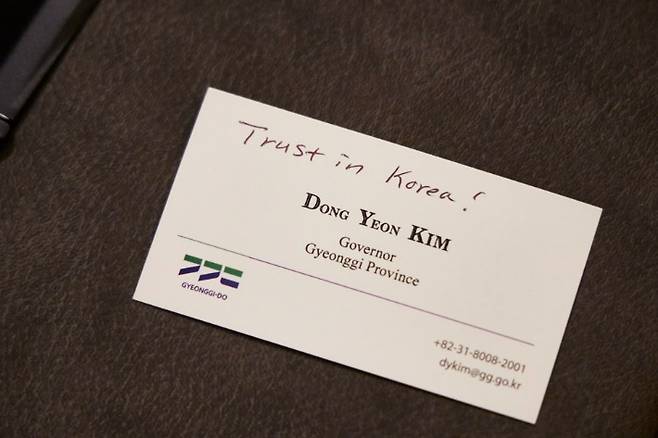 | ▲ 김동연 경기도지사가 2025년 1월 다보스포럼에서 만난 세계 각국의 지도자들에게 건넨, 'Trust in Korea' 문구가 적힌 명함. |