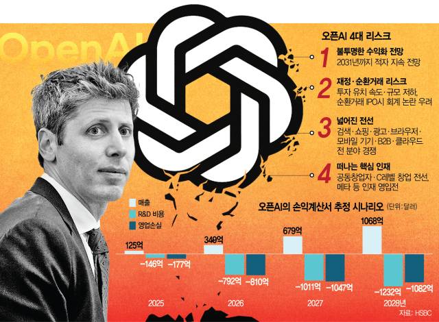 인공지능(AI) 혁명을 이끌며 ‘빅테크보다 큰 스타트업’으로 발돋움한 오픈AI가 위기에 처했다는 평가가 나옵니다. 기술 역사상 가장 빠른 사용자 증가세를 보이고 있지만 기업가치 3배, 연 매출 100배에 달하는 인프라 투자가 수익으로 이어질지를 놓고 우려가 커지고 있습니다. 최근에는 사용자 증가세가 주춤하는 가운데 추가 투자 유치도 난항을 거듭하는 모양새입니다. 2일(현지 시간) 콜렛 크레스 엔비디아 최고재무책임자(CFO)는 “오픈AI와 1000억 달러(약 147조 원) 규모의 투자 계약을 완료하지 않았고 (최종 계약 성사를 위해) 협력하고 있다”고 밝혔습니다. 시장에서는 AI부터 플랫폼·기기·인프라까지 전선을 넓히던 샘 올트먼 오픈AI 최고경영자(CEO)의 ‘대마불사’ 전략에 한계가 온 게 아니냐는 의구심이 나오고 있습니다.
