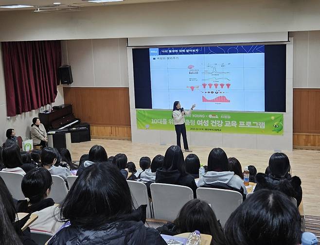 지난 3일 오전 10시경 찾은 서울 서대문구 소재 중앙여자고등학교 강당에는 대학수학능력시험평가(수능)를 마친 160여명의 고등학교 3학년 학생들이 모여있었다. CJ올리브영(이하 올리브영)이 마련한 맞춤형 여성 건강 교육 프로그램에 참여하기 위해서다. 이들은 미리 올리브영이 준비한 홈페이지에 접속해 다이어트 보조제 등 여성 건강과 관련된 다양한 궁금증을 남겼다. 이어 오전10시에 올리브영 직원이 무대에 오르자 객석에선 환호성과 함께 박수가 쏟아졌다.