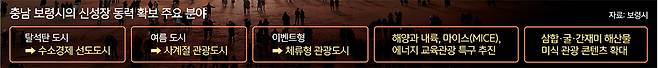 보령시는 ‘탈석탄 이후’에 대비해 관광과 마이스(MICE: 기업회의·포상관광·컨벤션·전시), 수소산업을 도시 성장 전략의 삼각축으로 내세우고 있다. 대천해수욕장·무창포해수욕장 등 해양 자원과 청라 은행마을, 성주사지, 보령석탄박물관 등 내륙의 역사·문화 자원을 하나의 동선으로 연결하는 통합형 관광 모델을 지향한다.