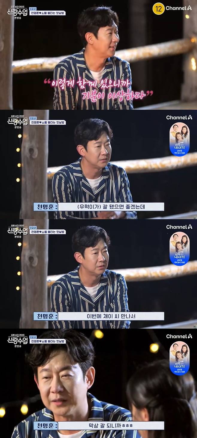 또 천명훈은 "(우혁이가) 잘 됐으면 좋겠는데 이번에 채이 씨 만나서 막상 잘 되니까 부럽더라. 자랑스러우면서 부럽기도 했다. 감정이 복잡하다. 뭔가 '나도 잘 해내고 싶다' 그런 마음도 있다"고 밝혔다. 앞서 장우혁은 '신랑수업'에서 인연을 맺은 오채이와 프로그램 후에도 사적으로 만나고 있다고 밝힌 바 있다.