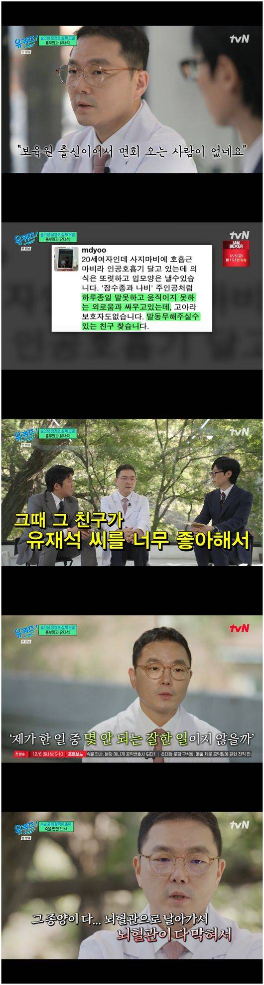 유재석 교수는 “저희 첫 아이 출산이 있었는데, 그때 그 아이가 축하한다고 했다. 나중에 남은 대동맥이 터져서 중환자실에서 생을 마감했다. 그래도 마지막까지 외롭지 않게 해줬다고 생각해서, 제가 한 일 중에 잘한 일이 아닐까 싶었다”라며 조심스럽게 말했다.