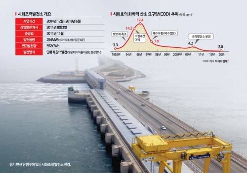 시화조력발전소는 2004년 12월 착공해 2011년 8월부터 운영에 들어갔다. 조력발전소 운영 이후 시화호 생태계는 되살아났다. 시화조력발전소를 통해 하루 1.47억t의 해수가 유입, 배출되는데 이는 시화호 저수 용량의 52%에 달한다. 조력발전소가 정체된 시화호에 해양의 순환력을 불어넣는 역할을 한 것이다.