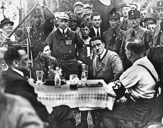 | ▲ 아돌프 히틀러가 1923년 11월 뮌헨의 ‘비어홀 쿠데타’ 사건으로 수감되었다 석방된 직후 나치의 전신인 바이에른 국가사회주의당을 방문한 모습. |