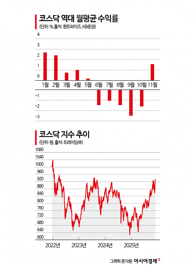 역사적으로 연말 연초에 강세를 띠는 코스닥의 계절성에 더해 펀드 자금 수혈, 상장폐지 요건 강화 등 정책 모멘텀에 대한 기대감도 확산하는 분위기다.