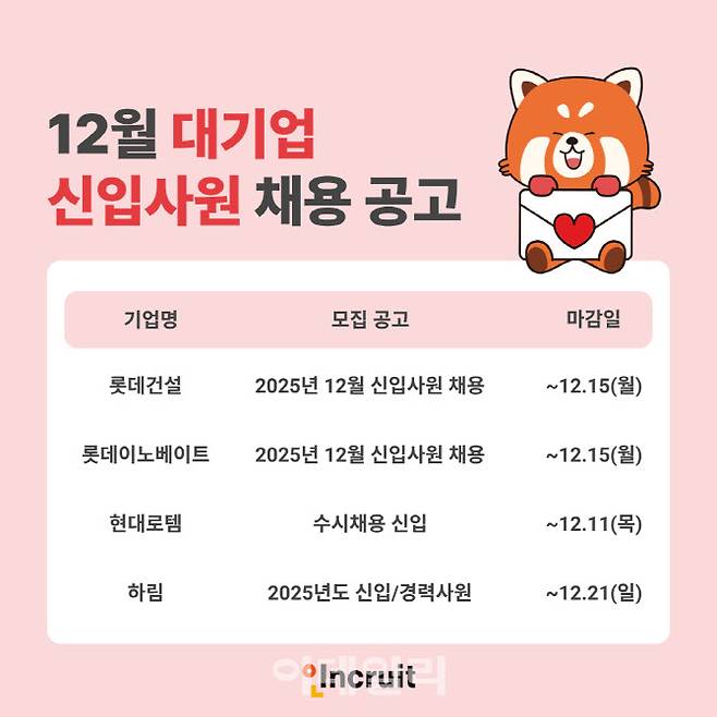 연말 채용문 열렸다…롯데건설·현대로템·하림 신입공채