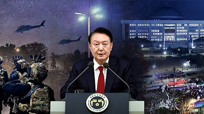 "북한 공산 세력의 위협으로부터 자유대한민국을 수호하고 우리 국민의 자유와 행복을 약탈하고 있는 파렴치한 종북 반국가 세력들을 일거에 척결하고 자유 헌정 질서를 지키기 위해 비상계엄을 선포합니다."
