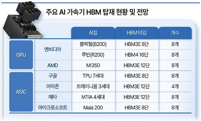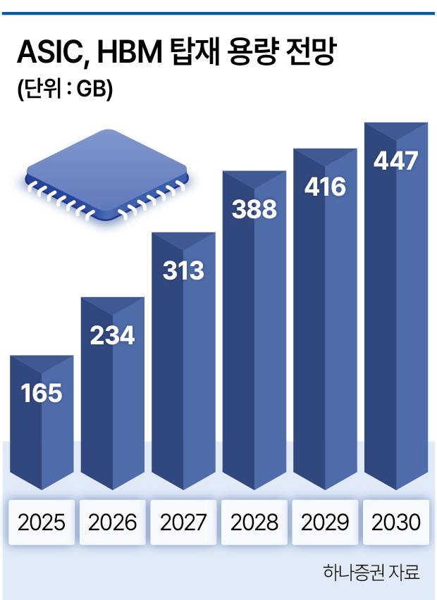 각 ASIC의 세대가 진화할수록 HBM 탑재량이 늘어나는 점도 삼성전자와 SK하이닉스에게는 호재다. 마이크로소프트의 경우 Maia 200의 HBM의 탑재량을 288GB(기가바이트)로 늘릴 전망이다. 구글도 HBM 용량을 대폭 키우며, TPU 성능을 향상시키고 있다.