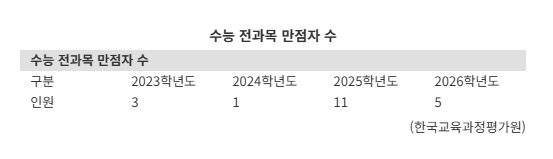 역대급 난이도의 '불수능'이었던 2026학년도 대학수학능력시험에서 5명의 만점자가 탄생했다.