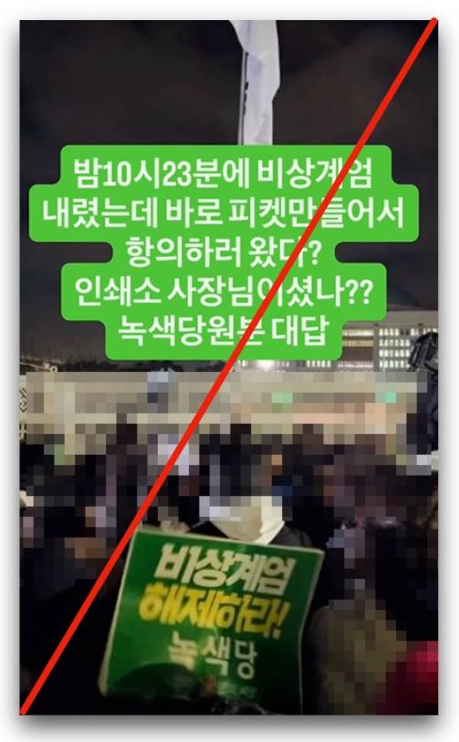 "녹색당, 계엄 미리 알고 팻말 준비했다"? 인스타에서 퍼진 가짜뉴스 [오마이팩트]